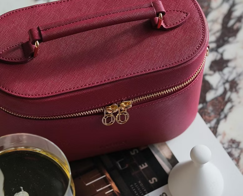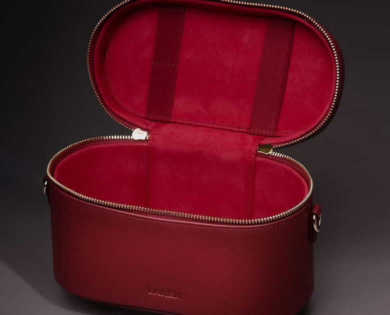 Червеното козметично куфарче Laren Beauté впечатлява с финес и премиум изработка от Saffiano кожа. Неговата характерна текстура и наситен цвят съчетават модерна естетика с усещане за вечна елегантност.